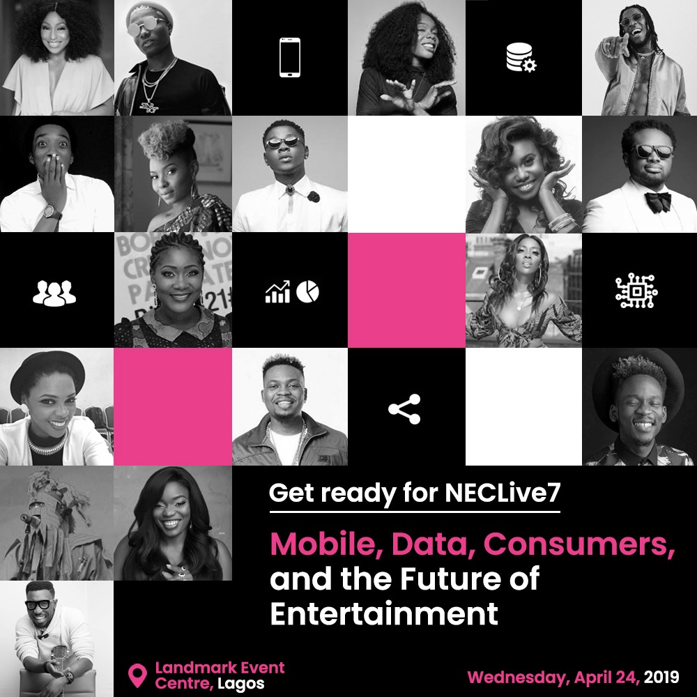 The countdown to the 2019 edition of the Nigerian Entertainment Conference (NECLive) officially begins today with sixty-two days to its scheduled date, April 24.The event which enters its seventh year is, as usual, an ensemble of the brightest entertainers, performers, producers, singers, celebrities, business personalities, and fans, where conversations geared towards the development of Nigeria’s entertainment industry will be discussed.This year, the conference returns to the Landmark Event Centre in Lagos and will focus on Mobile Data, Consumers And The Future Of Entertainment.